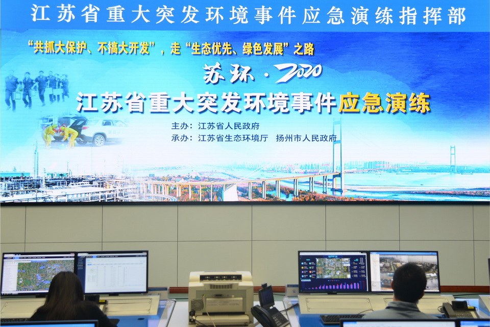 6月18日,由江蘇省政府主辦,省生態(tài)環(huán)境廳、揚州市政府承辦,我院承擔(dān)腳本編制的“蘇環(huán)·2020”江蘇省重大突發(fā)環(huán)境事件應(yīng)急演練在揚州化學(xué)工業(yè)園舉行。副省長趙世勇參加演練并擔(dān)任總指揮,省政府副秘書長諸紀(jì)錄、省生態(tài)環(huán)境廳廳長王天琦、揚州市政府市長張寶娟擔(dān)任副總指揮。