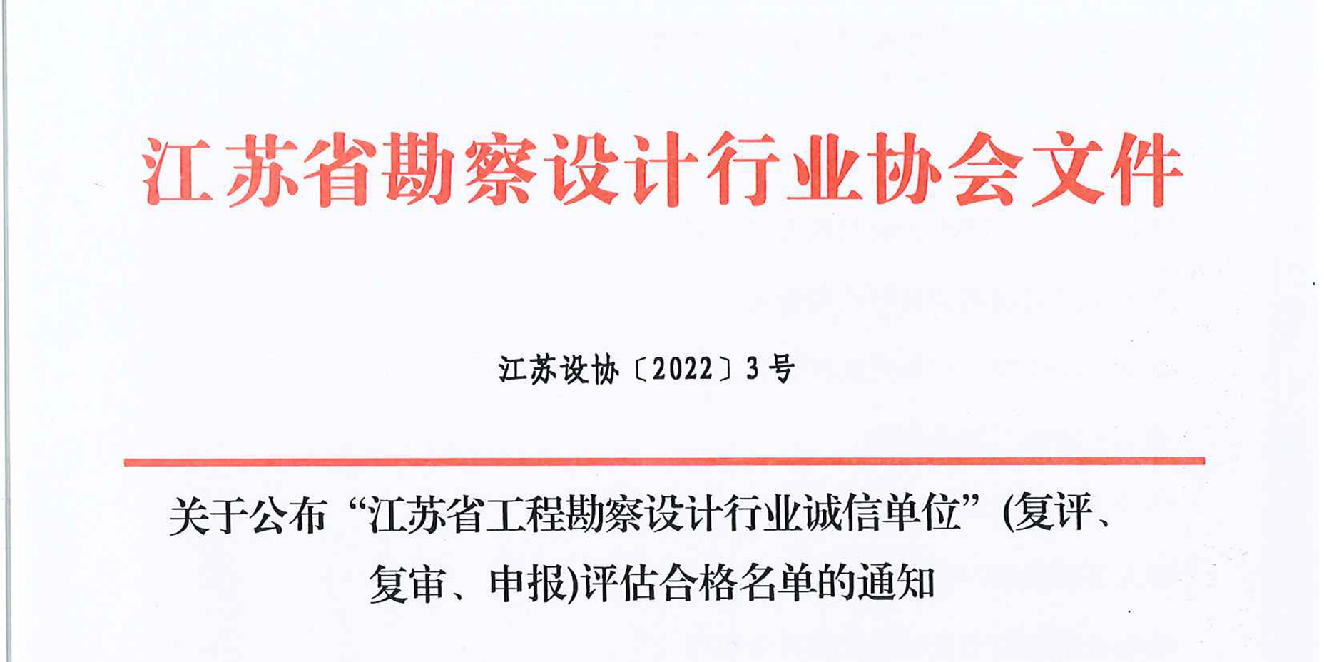 江蘇省勘察設計質量管理先進單位每兩年評選一次,旨在表彰行業內注重質量管理、質量監督以及質量提高的企業;江蘇省勘察設計行業誠信單位每四年評選一次,旨在表彰具有履約能力并誠信經營的企業。