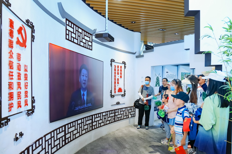 隨后,大家走進“茶、竹、蓮、松”主題戶外廉政教育點,聆聽陸納以茶代酒、鄭板橋聽竹憂民等歷史典故,在歷史與自然中凈化思想,修養品格。黨員干部們還在這里重溫了入黨誓詞,大家紛紛表示,要繼承和發揚黨的優良傳統和作風,提升“清如茗、正如松、廉如竹、潔如蓮”的黨性修養和高尚情操,踐行初心使命,以實際行動迎接黨的二十大勝利召開。