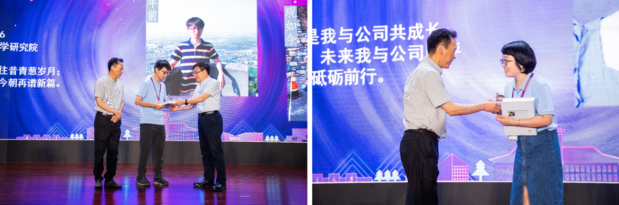 十年樹(shù)木,薪火相傳。五年資深員工的獎(jiǎng)牌授予暨院士贈(zèng)書(shū)環(huán)節(jié)由陸朝陽(yáng)總裁主持,員工們依次上臺(tái),從劉叢強(qiáng)院士手中接過(guò)親筆簽名的著作,從尹建康董事長(zhǎng)手中接過(guò)定制的獎(jiǎng)牌,并合影留念。隨后,由阮曉紅教授、集團(tuán)總工程師董迎雯研究員為15位新晉技術(shù)專(zhuān)家頒發(fā)聘書(shū)。