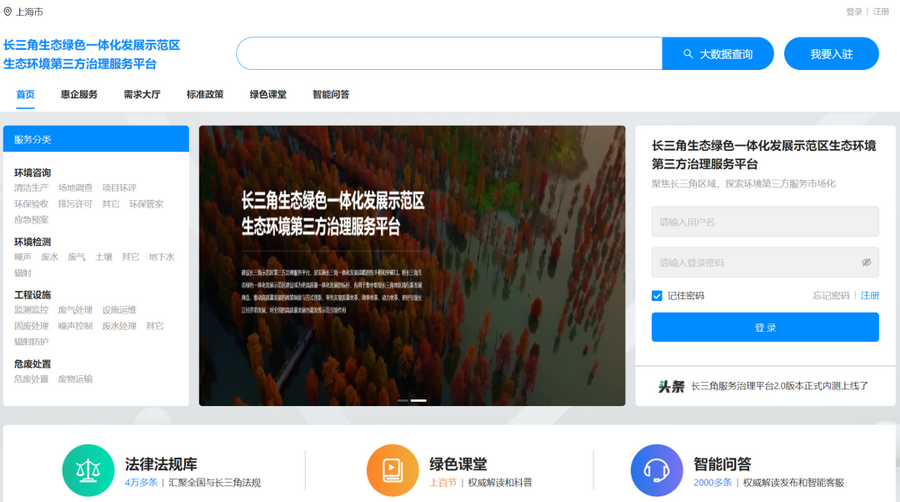 南大環(huán)規(guī)院開發(fā)的長三角生態(tài)綠色一體化示范區(qū)生態(tài)環(huán)境第三方治理服務平臺正式上線