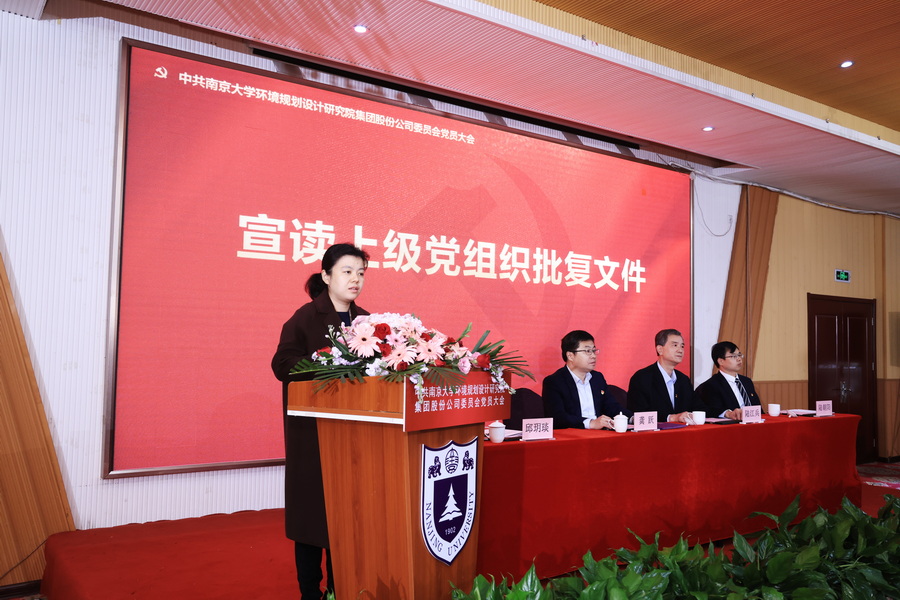 科技產(chǎn)業(yè)紀(jì)工委書記邱玥琰宣讀中共南京大學(xué)黨委《關(guān)于同意成立中共南京大學(xué)環(huán)境規(guī)劃設(shè)計研究院集團股份公司委員會的批復(fù)》和科技產(chǎn)業(yè)黨工委《關(guān)于成立“中共南京大學(xué)環(huán)境規(guī)劃設(shè)計研究院集團股份公司委員會”的通知》。在熱烈的掌聲中,南京大學(xué)黨委常委、組織部部長龔躍,南京大學(xué)科技產(chǎn)業(yè)黨工委書記陸江兵共同為中共南京大學(xué)環(huán)境規(guī)劃設(shè)計研究院集團股份公司委員會隆重揭牌。