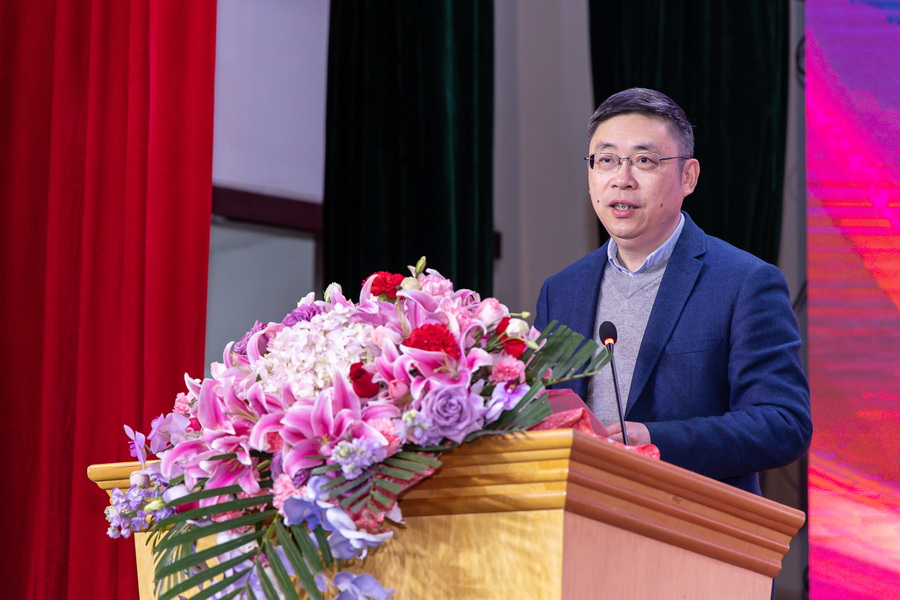 最后,南京大學副校長陸延青發表了熱情洋溢的講話,他以一句“同事們”親切的開場,代表南京大學向辛勤工作的全體員工致以親切的問候和美好的新年祝福。他在講話中高度肯定了集團一年來取得的成績,并以“犯其至難,而圖其至遠”的名言,總結環規院人“敢于向最難處攻堅,努力追求最高遠的目標“的“群體性格”;陸校長對環規院新一年的工作提出了殷切的期望,祝愿集團不斷創新,乘風破浪,再創輝煌。