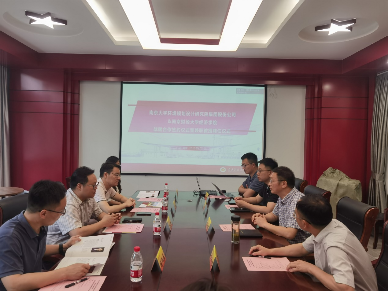 南京財經大學經濟學院及綠色經濟發展研究院教師代表、南大環規院環科院、工程設計分院、董秘辦及協同創新中心等部門代表參加簽約儀式并交流。