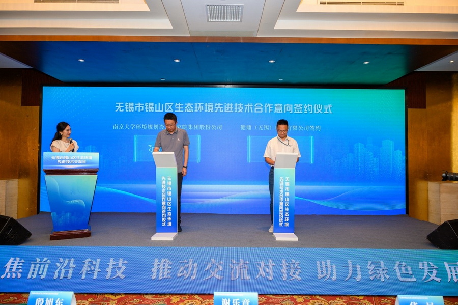 2023年8月4日,由無錫市生態(tài)環(huán)境局、錫山區(qū)人民政府主辦,錫山生態(tài)環(huán)境局承辦的生態(tài)環(huán)境先進(jìn)技術(shù)交流會(huì)在錫山舉行,相關(guān)管理部門和企業(yè)負(fù)責(zé)人百余人現(xiàn)場(chǎng)參會(huì)交流,南大環(huán)規(guī)院工程技術(shù)中心專家張紀(jì)文受邀在大會(huì)上做技術(shù)報(bào)告,中心主任助理孫永嘉與相關(guān)企業(yè)簽訂意向合作協(xié)議,并接受采訪。