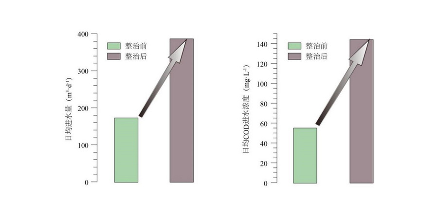 污水站整治前后進水量及COD濃度情況