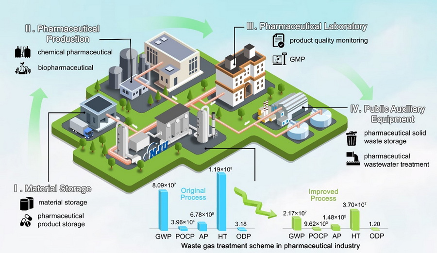 近年來(lái),南大環(huán)規(guī)院工程技術(shù)中心與中國(guó)環(huán)科院國(guó)家環(huán)境保護(hù)生態(tài)工業(yè)重點(diǎn)實(shí)驗(yàn)室聯(lián)合開(kāi)展了 VOCs減污降碳協(xié)同治理領(lǐng)域的研究。近日,相關(guān)科研成果以"Research on waste gas treatment technology and comprehensive environmental performance evaluation for collaborative management of pollution and carbon in China's pharmaceutical industry based on life cycle assessment (LCA) "為題,在《Science of The Total Environment》(中科院1區(qū)TOP,IF:9.8)上發(fā)表。