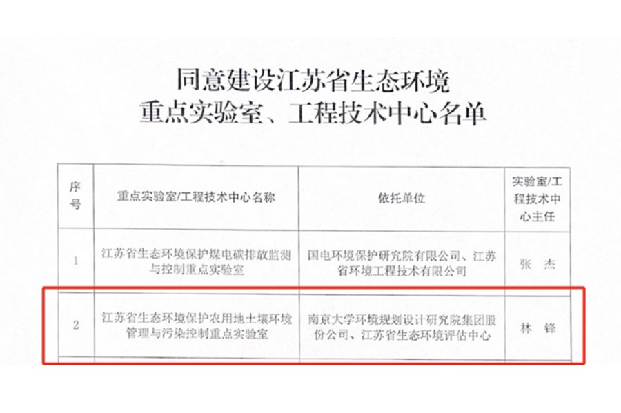 近日,江蘇省生態環境廳公布了江蘇省生態環境保護重點實驗室、工程技術中心建設名單,批準以南大環規院、江蘇省生態環境評估中心為依托單位建設“江蘇省生態環境保護農用地土壤環境管理與污染控制重點實驗室”,首任實驗室主任由林鋒研究員擔任。