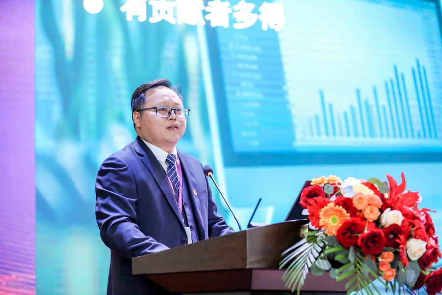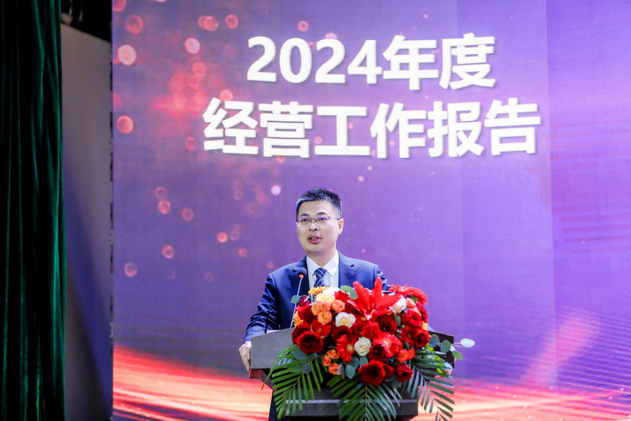 隨后,集團(tuán)總裁、研究院副院長(zhǎng)張以飛作2024年度經(jīng)營(yíng)工作報(bào)告。他表示,2024年是集團(tuán)改制12周年,亦代表著新周期的盛啟,面對(duì)新的社會(huì)形勢(shì)、行業(yè)變局,環(huán)規(guī)院要秉持初心,面對(duì)外部堅(jiān)持五真,和客戶共同成長(zhǎng);面對(duì)內(nèi)部做好四好,用保障溫暖人心,在困難的歷史大潮中穿越經(jīng)濟(jì)發(fā)展周期,讓單位、個(gè)人獲得共同發(fā)展。