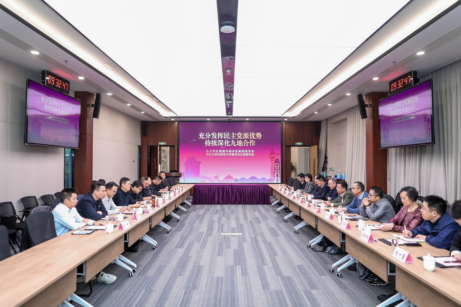 座談環(huán)節(jié),曹立群秘書長介紹了九三學社南大委員會在組織建設(shè)、人才隊伍與履職成果方面的總體情況。王增煒圍繞“九通科創(chuàng)合作”,介紹了九三南通市委員會在推動平臺共建、成果轉(zhuǎn)化與產(chǎn)業(yè)升級方面的進展。季小軍主委介紹了通州區(qū)基層委在參政議政與社會服務(wù)中的實踐,邱少波副主委則聚焦地方產(chǎn)業(yè)發(fā)展與生態(tài)治理,強調(diào)進一步發(fā)揮民主黨派優(yōu)勢。姚琪副總裁分享了我院立足專業(yè)領(lǐng)域與學科優(yōu)勢,科研團隊建設(shè)、服務(wù)地方實踐以及統(tǒng)戰(zhàn)人才工作情況,并期待共建深化合作,共育人才生態(tài)。