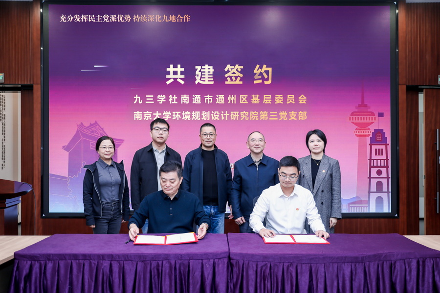 在共建簽約環(huán)節(jié),南大環(huán)規(guī)院第三黨支部與九三學社通州區(qū)基層委員會正式簽署共建協(xié)議。雙方將圍繞理論共學、資源共用、人才共育、難題共解等方面持續(xù)深化合作,通過機制化、常態(tài)化的聯(lián)動,共同打造基層協(xié)同與智力共享的創(chuàng)新范例。