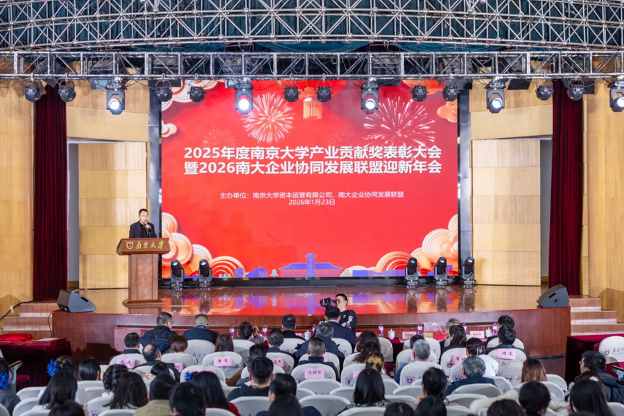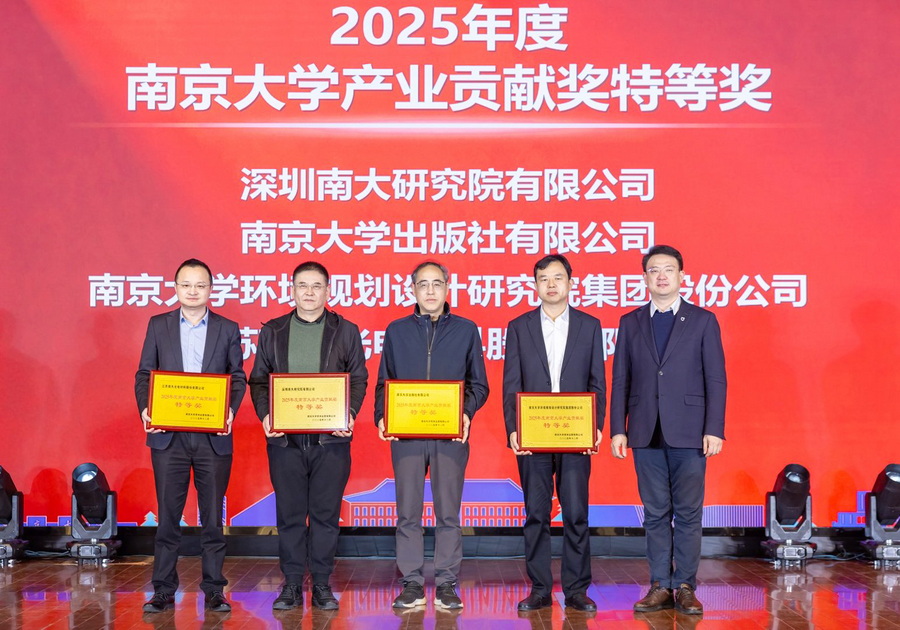 1月23日,2025年度南京大學產業(yè)貢獻獎表彰大會暨南大企業(yè)協(xié)同發(fā)展聯(lián)盟2026迎新年會在鼓樓校區(qū)科技館舉行。會上,南京大學黨委常委、副校長索文斌向南大環(huán)規(guī)院、出版社、深圳研究院和南大光電等4家單位頒授“南京大學產業(yè)貢獻特等獎”獎牌,此次獲獎是南大環(huán)規(guī)院連續(xù)九年蟬聯(lián)南大產業(yè)系統(tǒng)這一最高獎項。