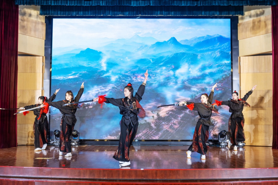 表彰環(huán)節(jié)結束后,迎新年會文藝匯演在熱烈的氣氛中拉開帷幕。經過精彩角逐,由我院員工代表呈現的的劍舞《寒鋒贈春》以其精彩表現,獲評本次匯演一等獎。